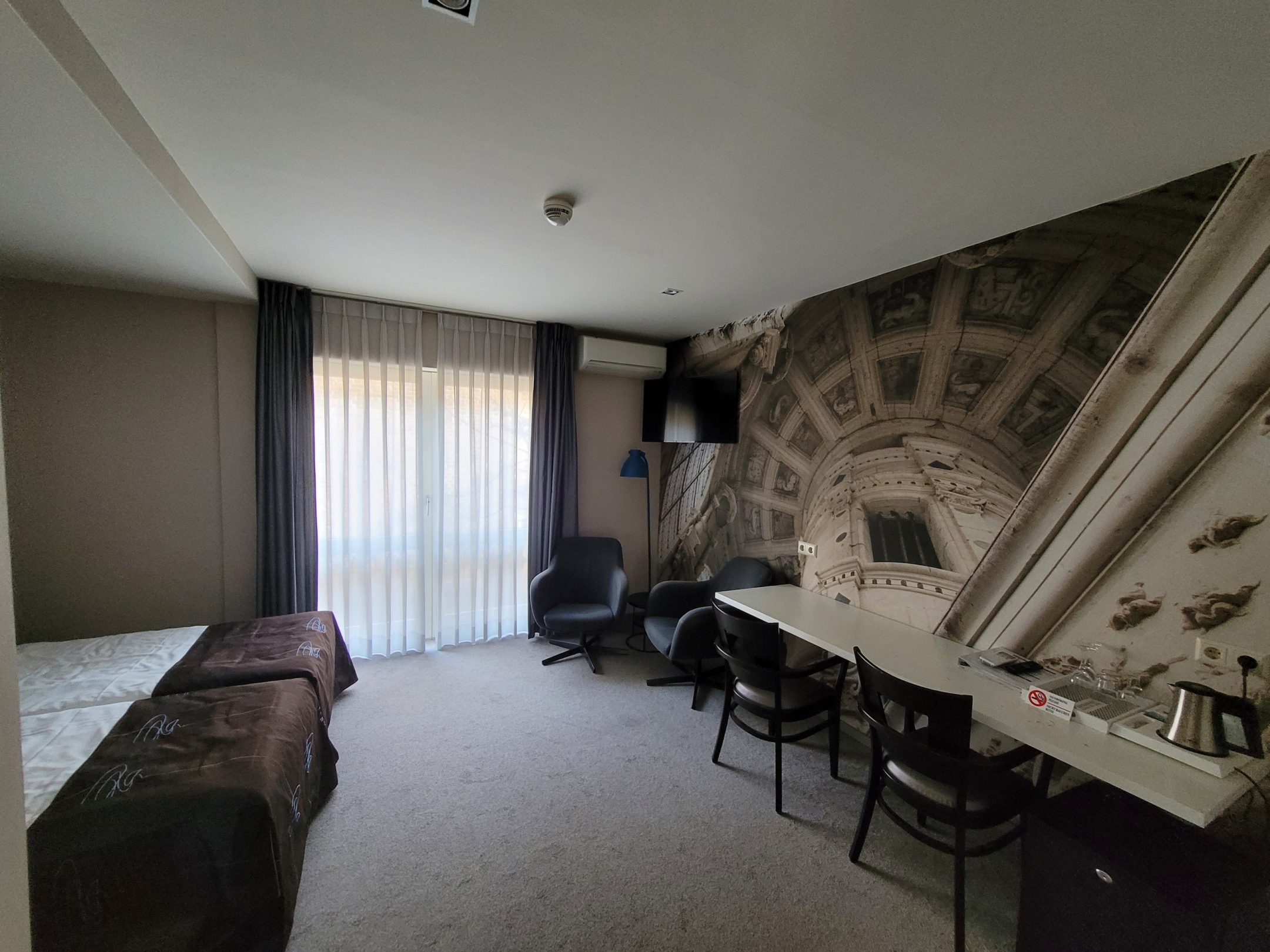 9 nette kamers verspreid over de begane grond en de eerste en tweede verdieping. De meeste kamers hebben een bad. Er is een kleine lift aanwezig.