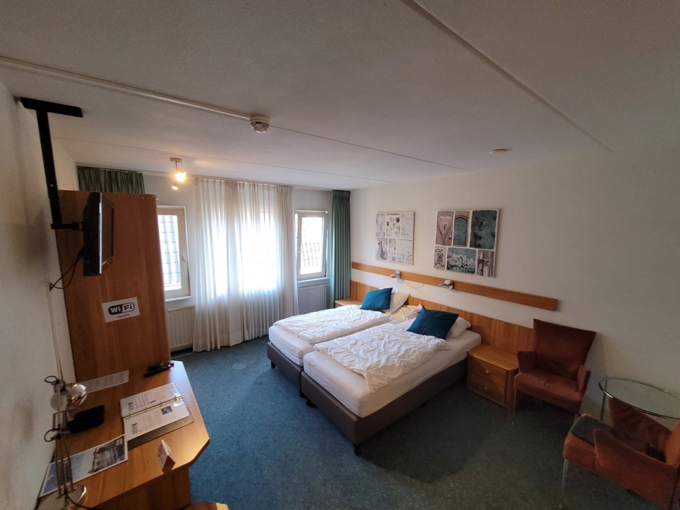 Deze kamers zijn ook bereikbaar vanaf buiten en hebben een klein terrasje aan het Gein. De kamer indeling is klassiek te noemen(hout).